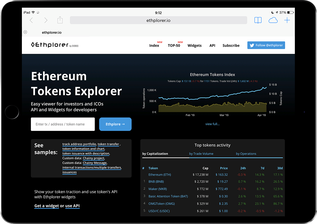 Ethplorer is the leading Ethereum blocks and transactions monitoring and analytical tool used by thousand of users daily. Ethplorer users include individual and institutional traders, investors and leading Ethereum projects. Most of them are already using Ethplorer's API, such as MEW, Metamask, Bancor, Storj, MyCrypto, AtomicWallet, Coinigy, Cointracking, Ambisafe, Coinpeak, Coinbooks, Chainy, EverexWallet and more.